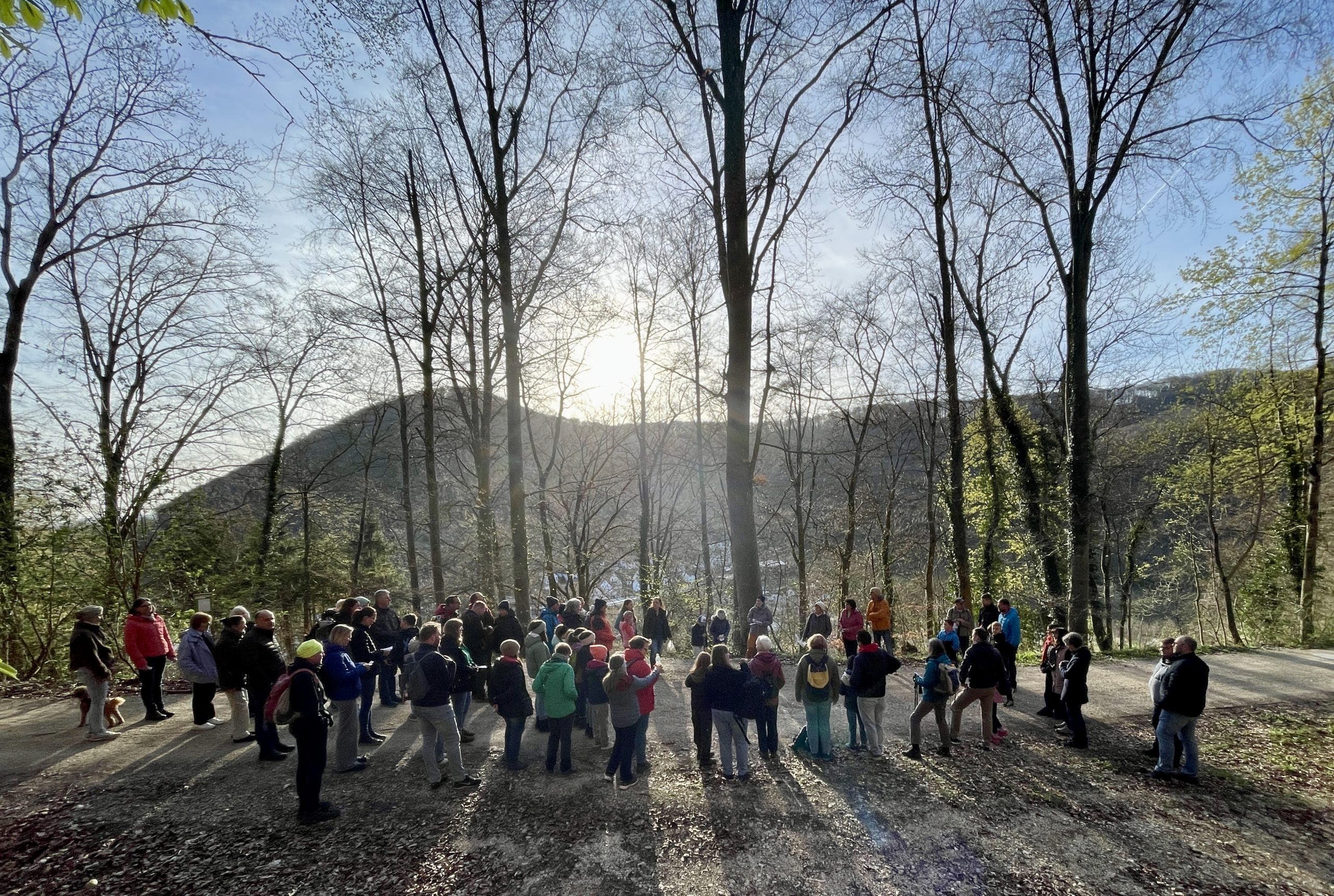 Eine große Gruppe mit TeilnehmerInnen aus allen Kirchengemeinden unserer Seelsorgeeinheit hat sich am frühen Ostermontag auf den Weg nach Lautern gemacht, wo uns nach drei Wegstationen dann die Sonne begrüßte.